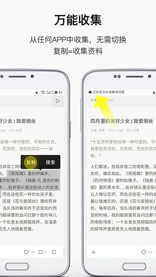 每条收集都能备份到印象笔记以及其他云存储空间。