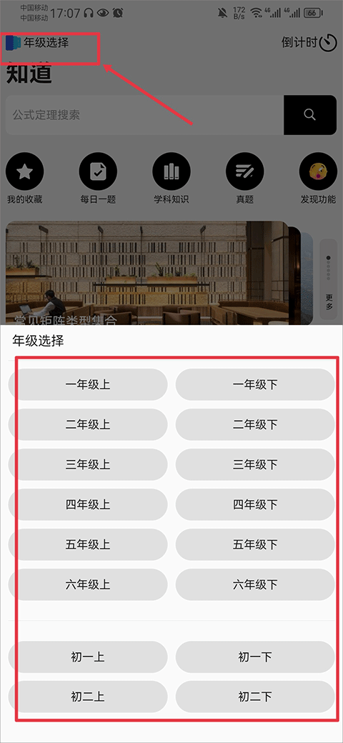 打开app,首先在游戏左上角年级选择中选择你所在的年级