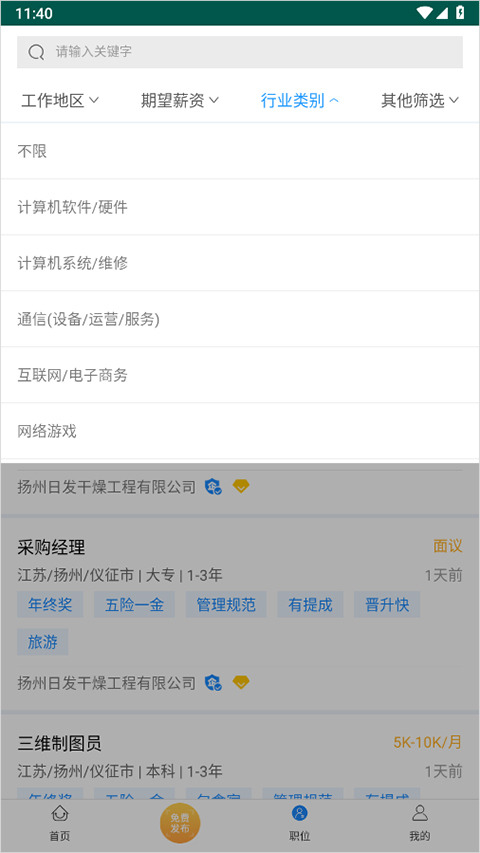 求职者可以前往职位页面,可根据工作地区、期望薪资等方式进行精准查找