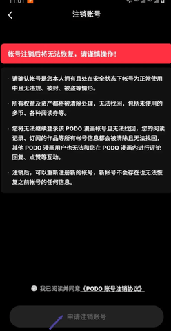 最后同意协议,再点击下方的“申请注销账号”并按照提示操作即可。