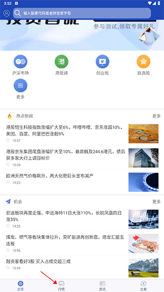 1、打开软件后,点击“行情”界面。