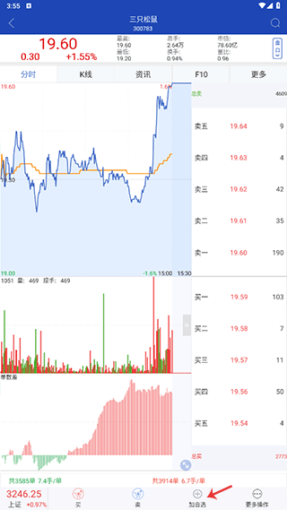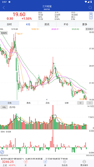 4、可点击K线、报价、F10、资讯等功能,进行股票行情分析。