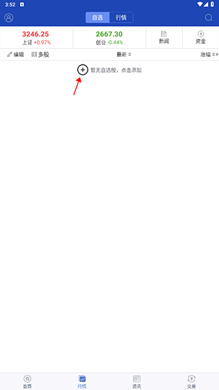 2、接着点击“暂无自选股,点击添加”。