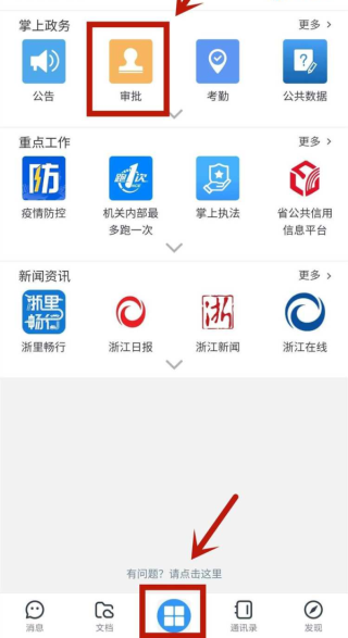 1、在本站下载安装后,打开软件,进入,“浙政钉”选择“审批”
