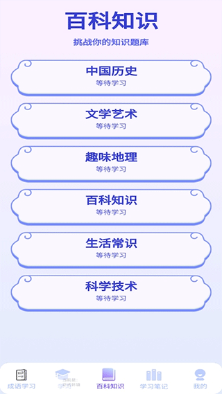 这是一款专为青少年设计的成语学习软件,包含百科知识、历史文化、文学艺术、生活常识、科学技术等多方面的成语及趣味典故。孩子们可以通过答题的方式进行学习,既有趣又刺激,有助于全面提升他们的知识水平。此外,软件汇集了多种类型的学习重点,并提供了详细的解析和讲解,使孩子们在学习成语时能够更好地理解其含义并记住它们。