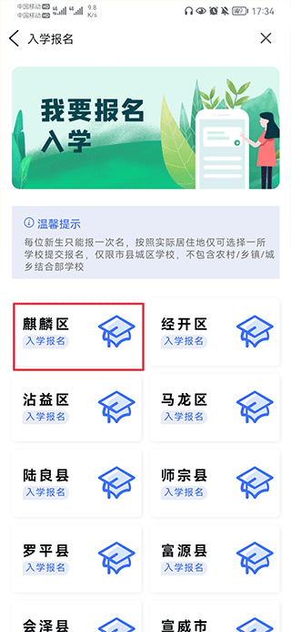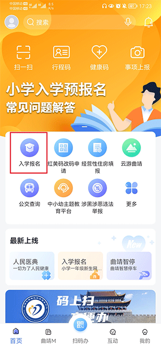 一、打开曲靖通手机客户端,在首页中点击入学报名