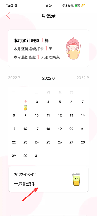 【日历】在日历上快捷查看这个月喝奶茶的情况。软件亮点