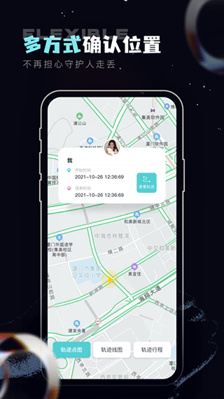 1、在地图上查找伴侣、家人、好友、孩子的实时位置信息。随时查询伴侣、家人、好友、孩子过往历史行程。