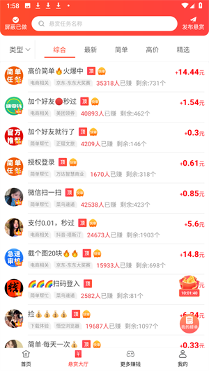 进入更多赚钱项目,可以选择不同类型的赚钱项目。