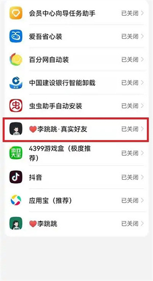在已经安装的服务列表中找到【李跳跳真实好友】点击进入到服务中;