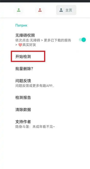 打开后返回到李跳跳真实好友软件首页中,然后点击【开始检测】;