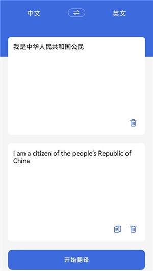 2、设定好翻译参数后,在文本框中输入要翻译的内容,然后点击底部的开始翻译按钮即可。