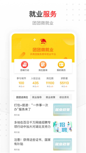 含有就业服务,用户在线就能找到合适的岗位,并投递个人简历。