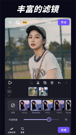 短视频剪辑为你提供多款电影胶片级的精美滤镜,提升视频画质。