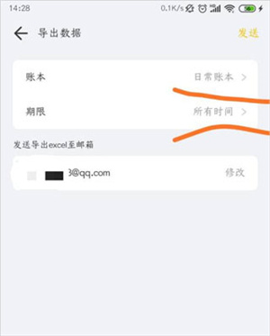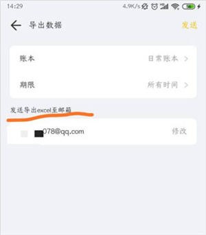 点击“发送”即可把账单导出到邮箱
