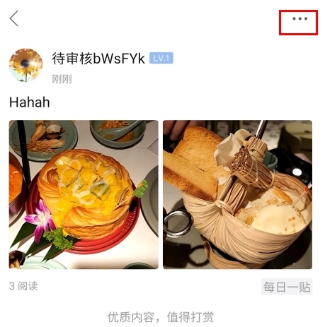 在圈子页面中找到发布的帖子,点击右上角的…按钮;