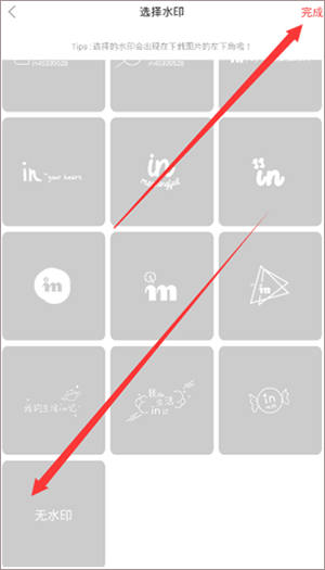 进入之后,找到最底部的【无水印】功能,最后点击右上角的【完成】即可成功去除水印。