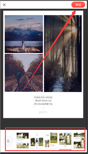点击之后选择你喜欢的模板,接着点击右上角【继续】就可以进入编辑文字的页面;