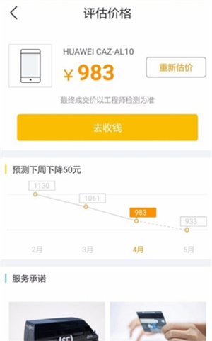 点击“查看预估价”之后,会进入预估价格页面,查看你的手机还能卖多少钱,觉得满意的话直接点击“去收钱”;