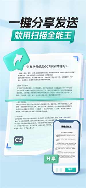 ocr技术是扫描全能王最核心的功能,对文档全篇ocr后,只需输入图片或文档内的关键字,即可快速查找到含有此关键字的文档。高级帐户还能把图片上的文字直接变成文本导出。