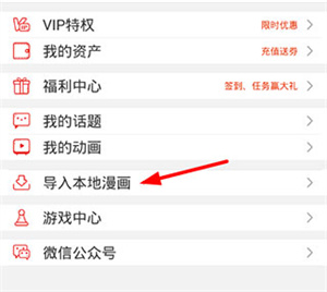 在我的个人页面中可以看到下面导航中有导入本地漫画的选项,点击选择