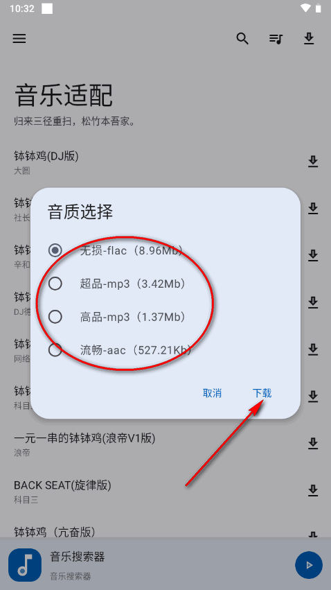 音乐适配app安卓新版,作为一款免费播放器,使您能够享受全方位的网络音乐资源,并支持无损音乐下载。无需任何费用,打开后即可立即使用,轻松搜索全网音乐,拥有最新曲库和多种音质选择。无论何时何地,想听就听,想下载就下载,是您理想的听歌助手。此款无广告的音乐搜索工具,帮助您通过歌词轻松找到喜欢的歌曲,支持在线试听或一键下载。简洁、免费且无广告,是您听音乐和下载音乐的理想选择。