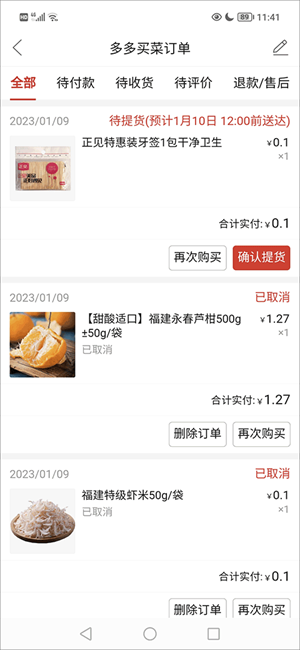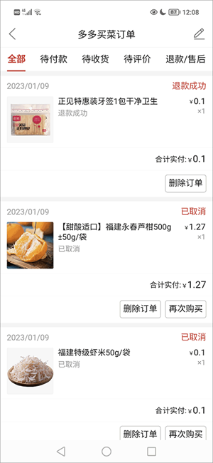 2、然后,在多多买菜订单中找到并点击你需要退款商品的商品;