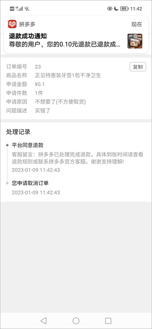 2、然后,在多多买菜订单中找到并点击“取消订单”选项;