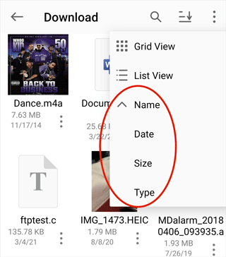 您可以按照名字、日期、大小来排序文件和文件夹。