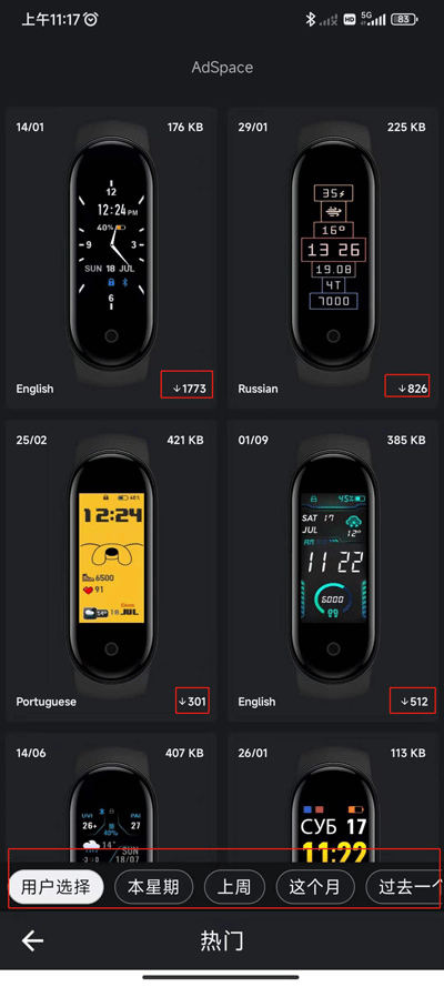 3、怎么查看表盘下载量?