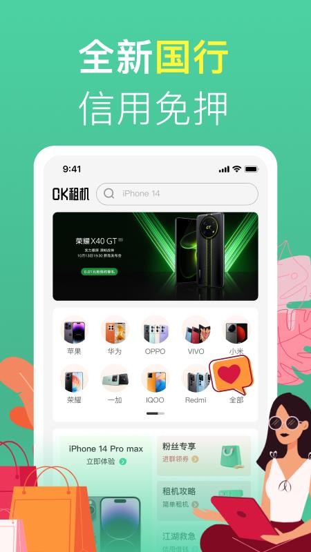 OK租机APP是一个电子设备租赁平台,涵盖大多数主流机型,包括苹果、华为、小米、荣耀和一加等品牌。用户可以在线筛选各类产品,帮助您迅速找到心仪的手机型号。您的租赁需求将在线审核,并在次日快速发货,确保您能及时获得租赁的电子设备。在OK租机软件中租赁设备,只需凭借个人信用分即可在线完成,无需缴纳押金。此外,您还可以在此回收闲置的二手手机,实现其价值。有需要的用户请尽快下载体验。