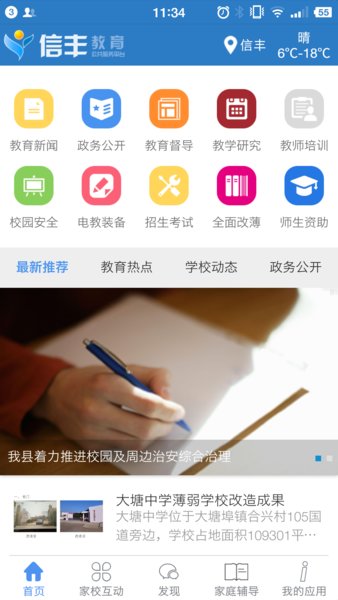 信丰教育云客户端 具备非常全面的教育管理功能,平台内的各个板块都提供了实用的校园必需信息。首页可以了解学校的最新资讯,同时为家长和学校搭建了互动交流的桥梁,并且有众多家庭辅导课程的视频可供观看。需要的用户快来下载体验吧!