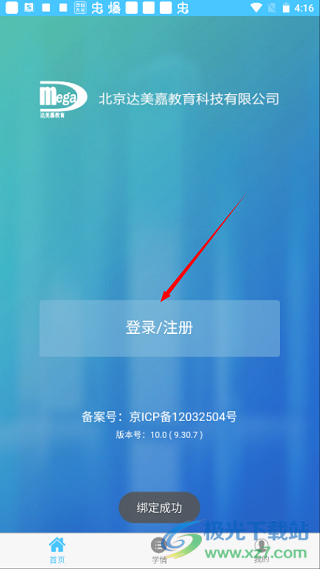 2、接着点击“登录/注册”按钮。若无账号,则需先完成注册;已有账号的可直接登录。同一学年里,一个手机号只能绑定一位学生,且每位学生最多可绑定两个手机号。