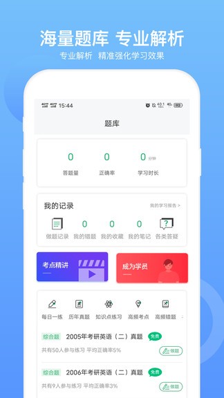 mba联考题库权威版 是专为准备mba等考试的考生设计的练习平台,包含大量的题库资源,涵盖北大mba、清华mba等多所院校的考试内容,让您随时可以进行练习。此外,还提供免费试听课程,支持实时上课和在线交流,实现互动答疑。