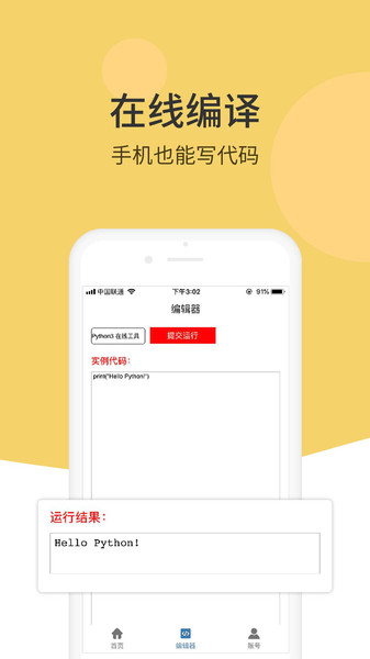 -这里可以用手机写代码,不需要电脑、笔记本,手机移动式学习,效率高;