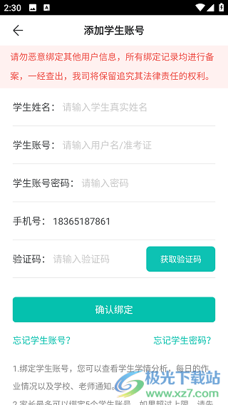 6、填写学生姓名、账号登相关消息即可获取成绩。