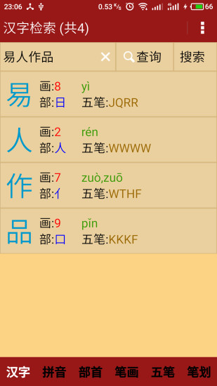2. 支持汉字、拼音、部首、笔画数等搜寻方式。