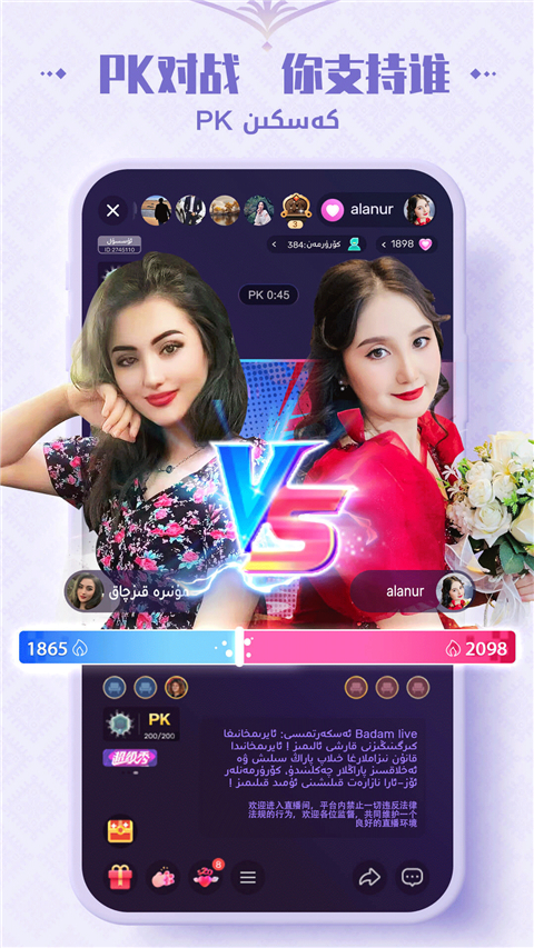 BadamLive直播App,又称巴旦木直播平台,是一款专为新疆明星和才艺达人打造的直播平台。它不仅为用户提供了聚会、颜值、脱口秀、搞笑等多种直播类型,还支持维吾尔语和中文双语切换,让用户能够感受到独特的异域风情。无论是想欣赏新疆明星的精彩表演,还是与主播进行实时互动,BadamLive都能满足你的需求。平台还会不定期举办歌唱、舞蹈、茶话会等丰富多彩的节目,用户可以通过首页查看详细直播时间,随时参与其中,体验不一样的直播乐趣。