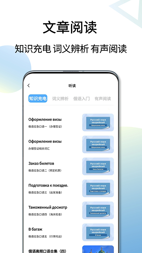 5、文章阅读:提供经典诗歌、双语文章等有声阅读资源,同时设有俄语基础和进阶专栏文章,帮助用户提升阅读能力。