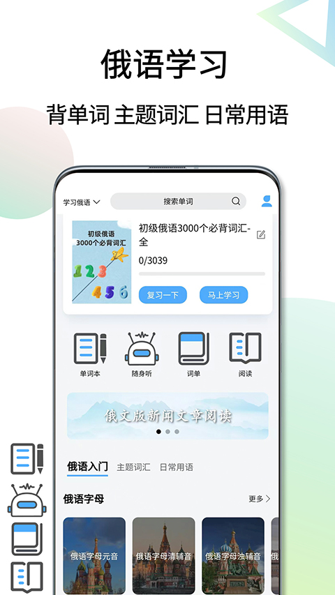 2、智能语音:提供汉语和俄语的智能发音功能,帮助用户准确掌握语音语调。