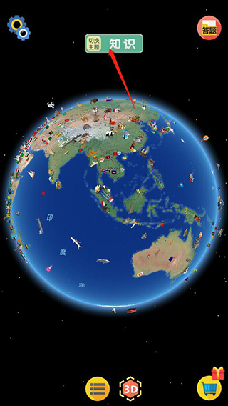 2、点击地球上方可以切换主题;用户可以根据自己的兴趣,选择不同的主题进行探索。