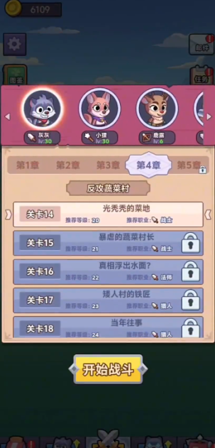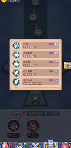 2、选择 关卡 进行挑战,在这里你可以自由的去 升级 各种技能和被动