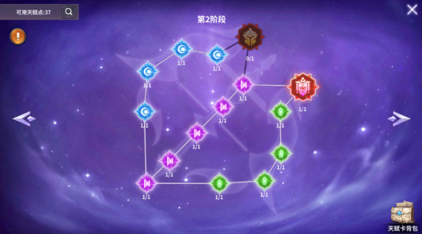 首先将 连线 上的天赋点依次从左到右把他点上1级,需要11点天赋点,然后右边的一大块高收益天赋就解锁了,我们将5点攻击点满(注意要对应主力的种族和职业)