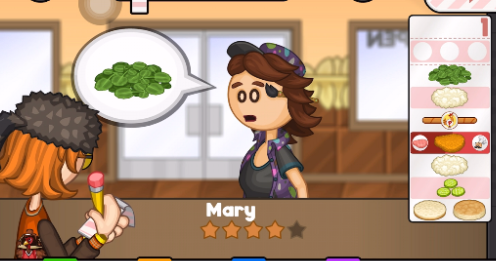 5、菜单里包含三明治,配菜,点心和苏打。你玩得越多,食材就越多!