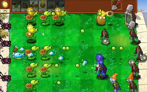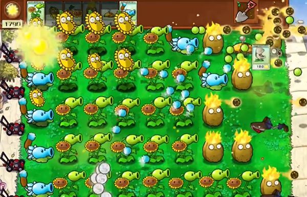 前期优先使用豌豆向日葵布阵,有足够火力之后我们就需要开始就爱你造坚果了。