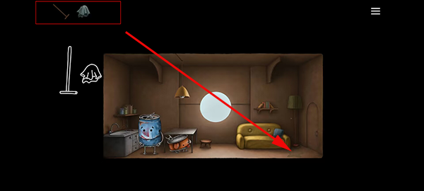 清理完成后,走出房间并捡起外面的皮球。