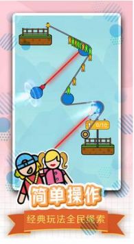 只需将手指放在在线关卡起点和终点的绳子上,即可帮助角色通过关卡。