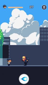 这是一款像素风格的跑酷游戏。玩家控制像素角色在前行中巧妙避开各类障碍,成功进入下一关。