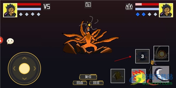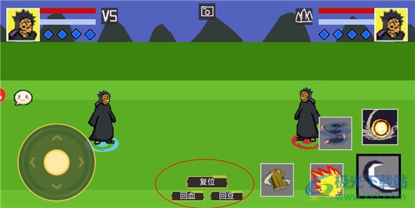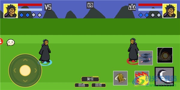 4、若战斗中无法释放必杀技,可使用底部的【重置】键。顶部显示的是角色的生命值,生命值先归零的一方为败者。