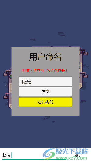 1、进入游戏时第一步游戏就会要求玩家取一个名字。